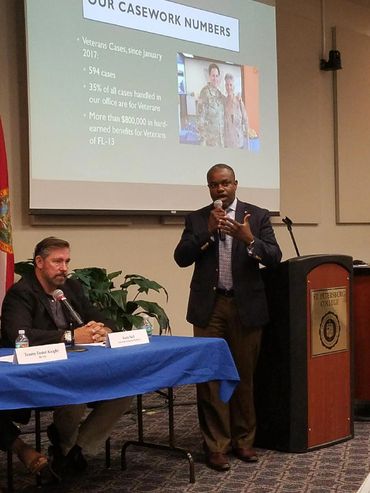 Congressman Charlie Crist, Florida’s 13th District and She VET had a great day. The Congressman hosted a Veterans Service Organizations Expo. I sit on his Veterans Advisory Board and as a panelist today, we discussed VA benefits, homelessness, education and entrepreneurship. It was a great moment when he asked me to discuss my research on women Veterans diagnosed with PTSD as a result of military sexual trauma. The men and women that approached me afterwards; wanting to know more about She VET were awesome!!!